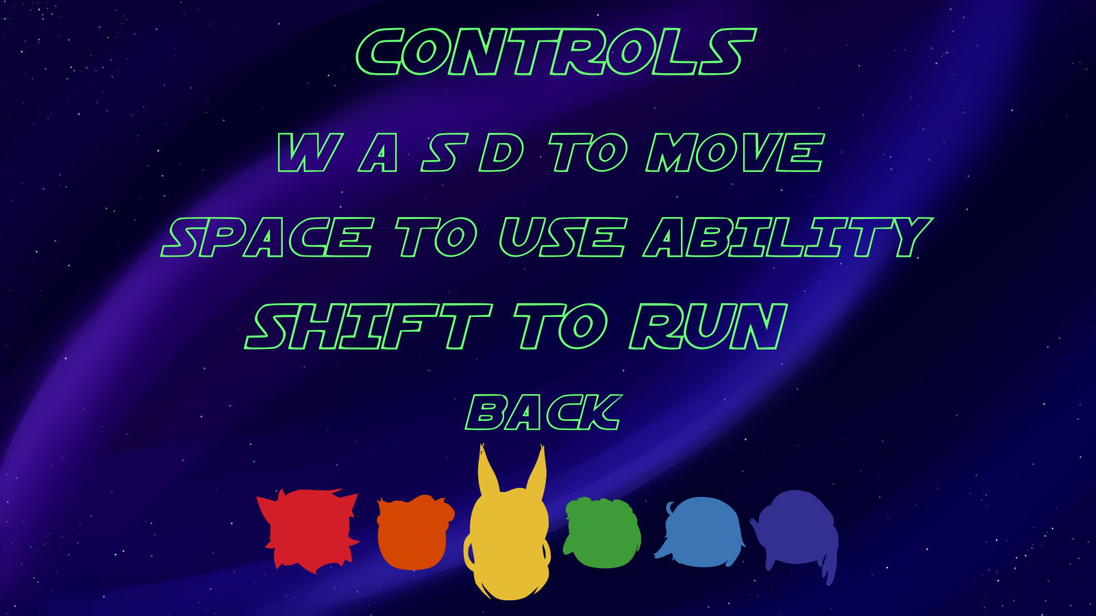 Six aliens imprisoned in a detention camp for being colorful, must fight together to keep their leader safe. Thus ensuring the escape of the group and the defeat of the gray oppression. Only the purple one has powers to interact with the scenery. Using powers makes the group exposed to attacks, watch out.